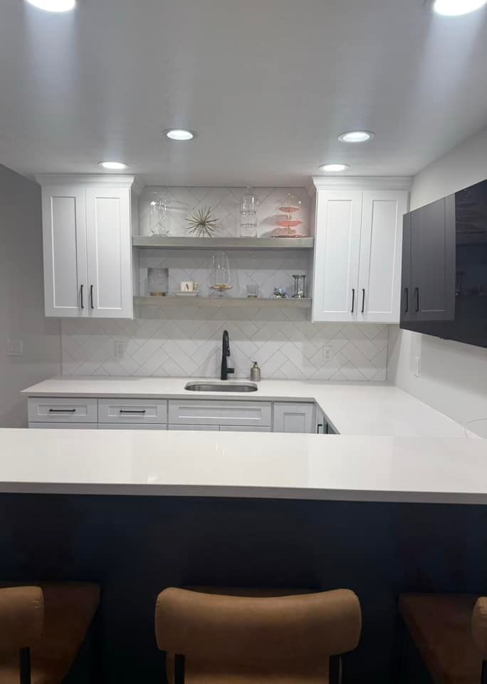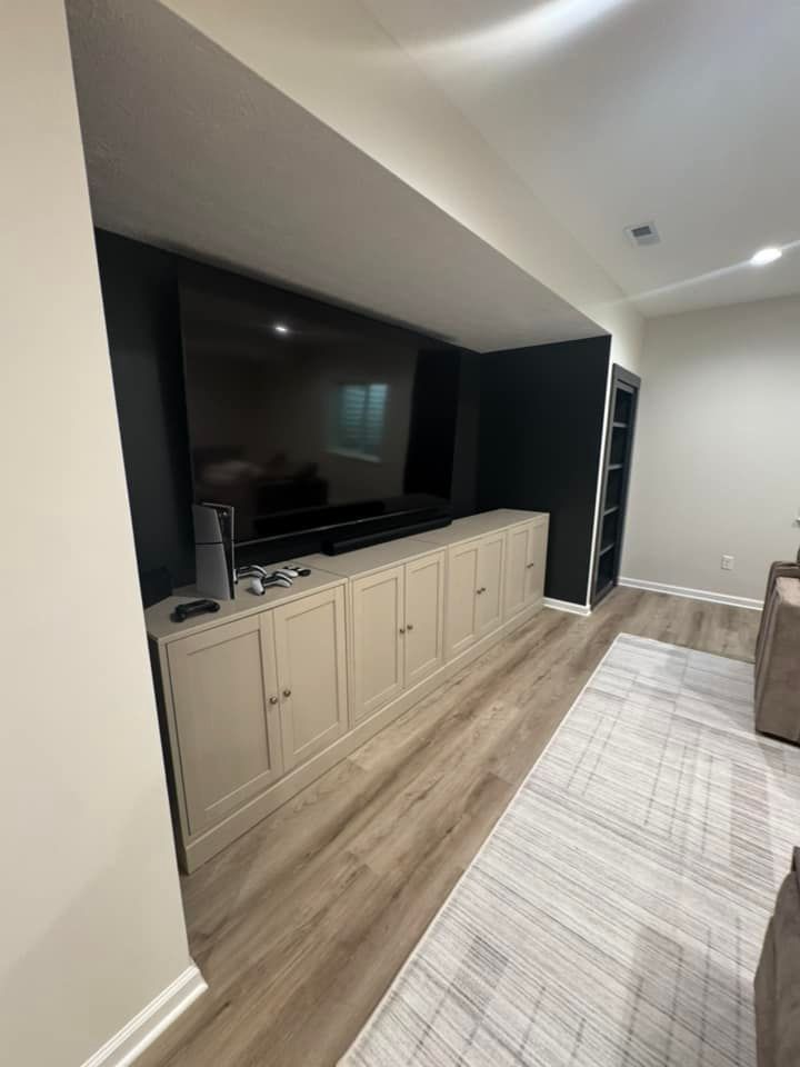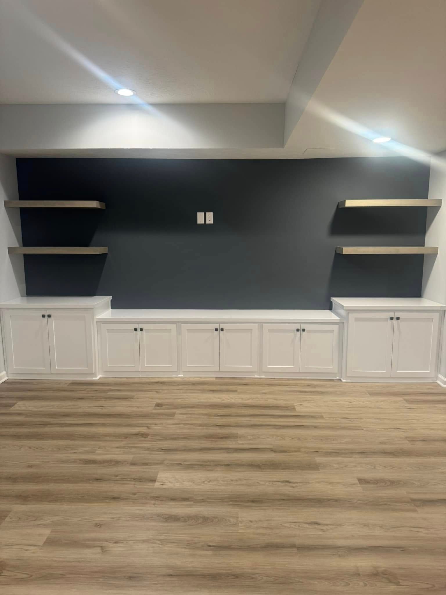 - Custom Finishes & Built-Ins – From custom bar installations to built-in media walls, we deliver design elements that elevate your basement.